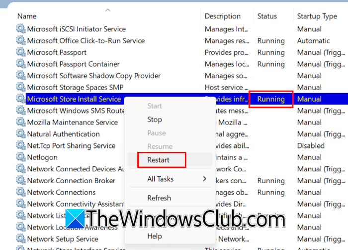 Microsoft Store 安裝服務為 Microsoft Store 提供基礎結構支持。該服務按需啟動,如果禁用或停止,安裝將無法正常運行。檢查該服務的狀態。它可能會被停止或禁用。如果發生這種情況,請重新啟動該服務。