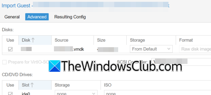 - 現在,轉到先進的選項卡。您需要選擇磁盤控制器、CD/DVD 驅動器選項和網絡接口選項。