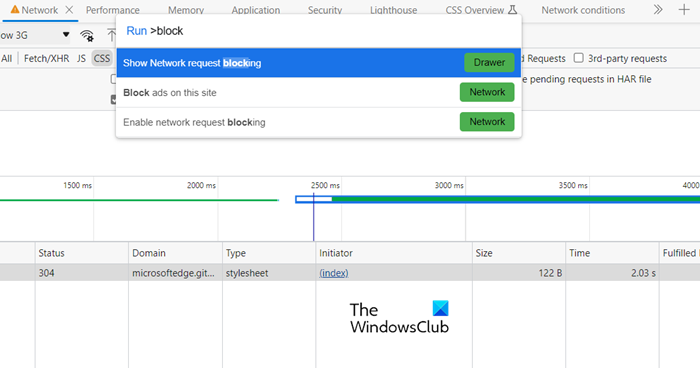 - 現在,輸入堵塞並選擇顯示請求阻止。