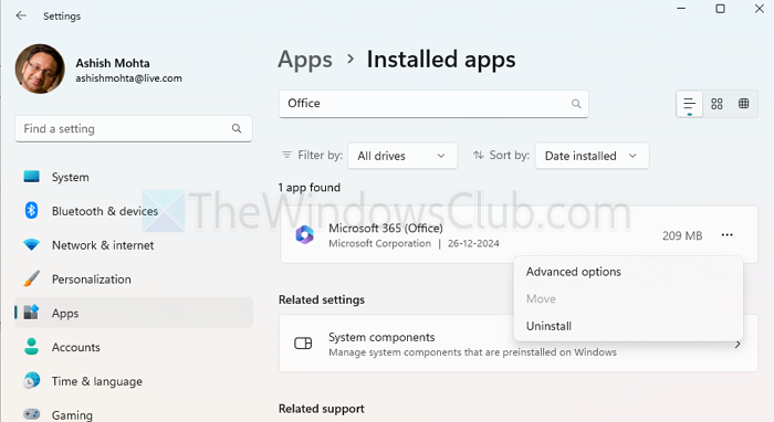 - 找到 Microsoft Office(您也可以搜索它)並單擊三點菜單。
