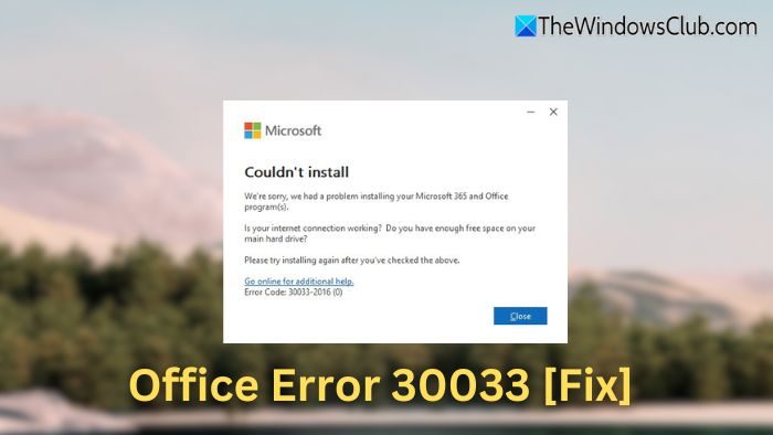 如果您收到包含以下內容的錯誤消息30033當你嘗試安裝時微軟365,這篇文章將幫助您解決這個問題。出現此問題的主要原因是某些東西阻止或不允許安裝通過通常的路徑。