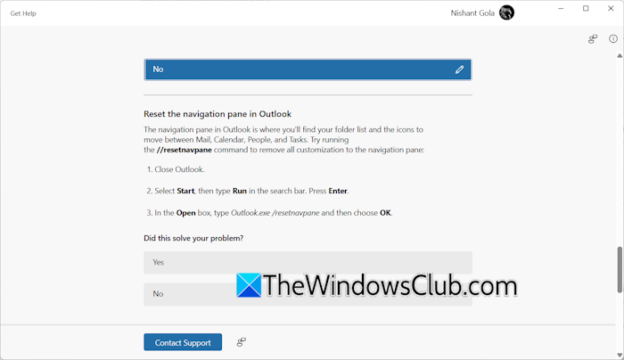 提出每條建議後,疑難解答人員都會詢問您的反饋。就您的問題是否得到解決提供正確的反饋。如果您錯誤地給出了錯誤的答案,您可以通過單擊鉛筆圖標進行更改。如果故障排除程序無法解決問題,它會建議您聯繫 Microsoft 支持以獲取進一步幫助。