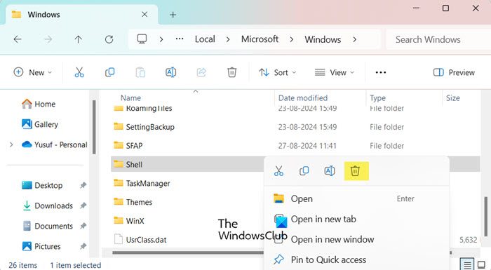 Windows中的Shell文件夾包含系統的默認佈局,如果該文件夾的內容損壞,我們可能會遇到諸如上述問題。要解決此問題,我們建議您刪除 Shell 文件夾,因為 Windows 會自動創建一個文件夾。如果沒有快捷方式適合您,請登錄另一個用戶帳戶,然後將其刪除。請按照下面提到的步驟執行相同的操作。