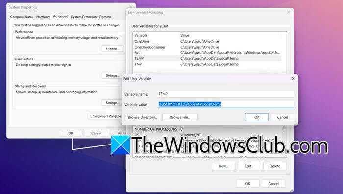 Windows 中的 Temp(臨時)文件夾是操作系統和各種應用程序用來存儲臨時文件的目錄。創建這些文件是為了在程序執行或軟件安裝期間臨時保存數據。您確實有權通過重新分配環境變量來更改 Temp 文件夾的位置。為此,您可以按照下面提到的步驟操作。