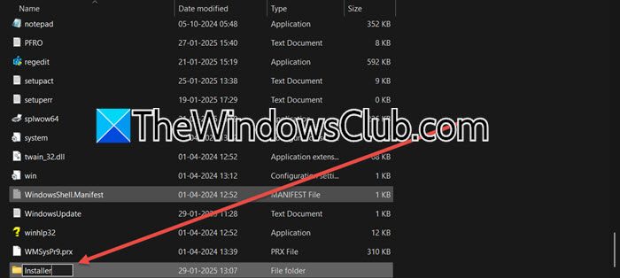 如果您找不到安裝人員文件夾,轉到C:\Windows,右鍵單擊空白處,選擇新建 > 文件夾,並命名它安裝人員。
