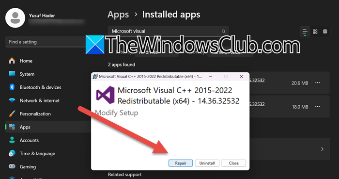 如果您在更新程序(例如 Microsoft C++ Redistributable)時遇到此問題,您應該嘗試修復該程序的已安裝實例。為此,請按照下面提到的步驟操作。