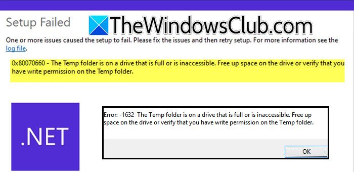 當嘗試安裝或更新任何應用程序(例如 .NET Framework、Adobe Acrobat、Microsoft Visual C++ Redistributable 等)時,您可能會遇到一條消息:Temp 文件夾位於已滿或無法訪問的驅動器上,錯誤 1632 或 0x80070660 。在這篇文章中,我們將討論這個問題,並看看您可以採取什麼措施來解決它。