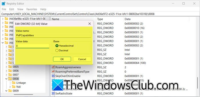 我們將進行一些註冊表調整,通過禁用 Windows 關閉電源的功能,強制 Wi-Fi 適配器在睡眠狀態下保持活動狀態。當適配器屬性中缺少標準“電源管理”選項卡時,PnPCapativity=0 設置將覆蓋隱藏的電源管理功能。