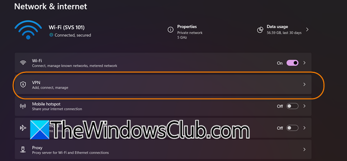 - 您需要禁用 VPN/代理。前往設置 > 網絡和 Internet > VPN。